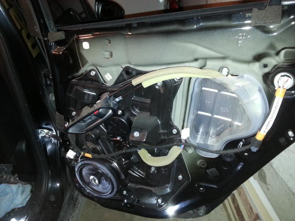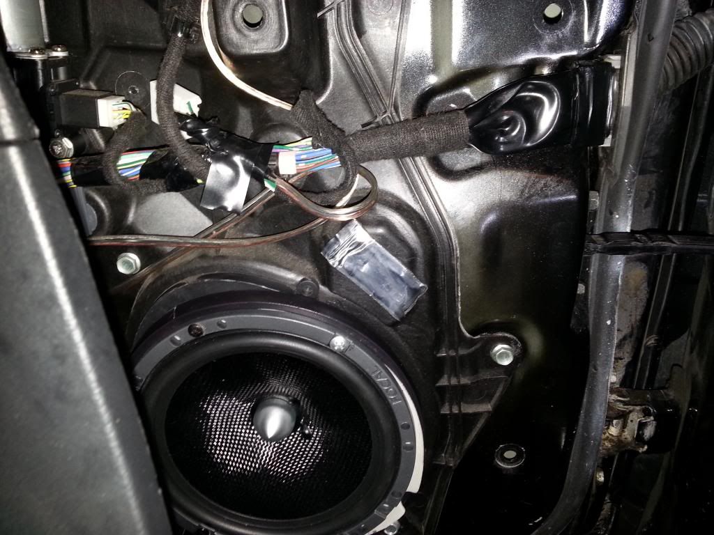 it took me about 3 hours.... I kinda had to learn how to take the door panel off lol... I actually made a modification recently. I had an issue with the door lock and it needed to be replaced. While I was at the dealer they removed the speaker and due to all the rain it was covered in water... Im guessing front the window seals. anyway I uses half a baffle for each speaker to act as kind of an umbrella inside the doors. That was the best idea i could think of....