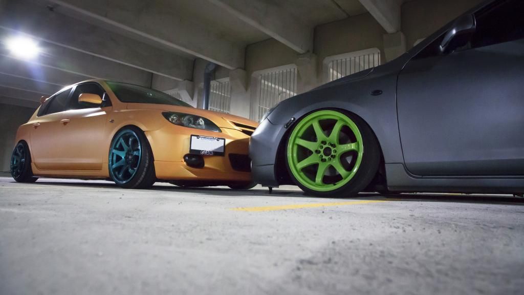 Your car likes to get around eh? Kissing sedans and hatches. Lol (sorry, acting strange after working on mid term assignments for hours). Awesome looking ride and pictures though, your car has come a long way over the years!