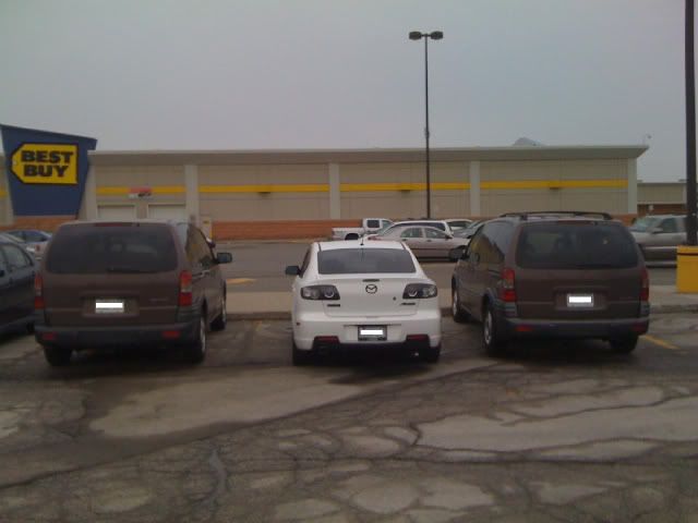 any idea... looked dropped maybe rims couldn't see the plates grabbed my attendtion thought it was you but no stripes or roof racks (you've probably taken them off by now) seen a lot of tunned Mazda3s around town the black 07 sedan rims/exhaust works at paradiso plus the orange one done up and also a blue hatch with black rims (napster and I saw it at the car wash)