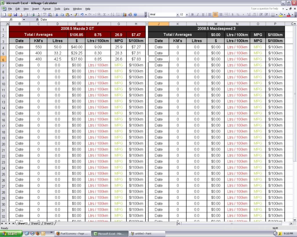 There is a spot for each of our cars. If you want a copy I will e-mail it to you, just send me a PM. The formula cells are protected so you can't mess them up.