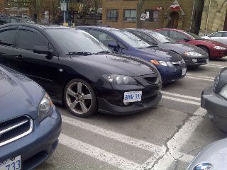 Cruised on the Gardiner going westbound yesterday around 6:00 pm. Spotted a black mica sedan with two guys in it. Noticed the TM3 plates, tints, amber headlights and i thinkkkkk MSR rims? Not sure. I was the guy in the middle lane with the pedobear on my rear window hahaha