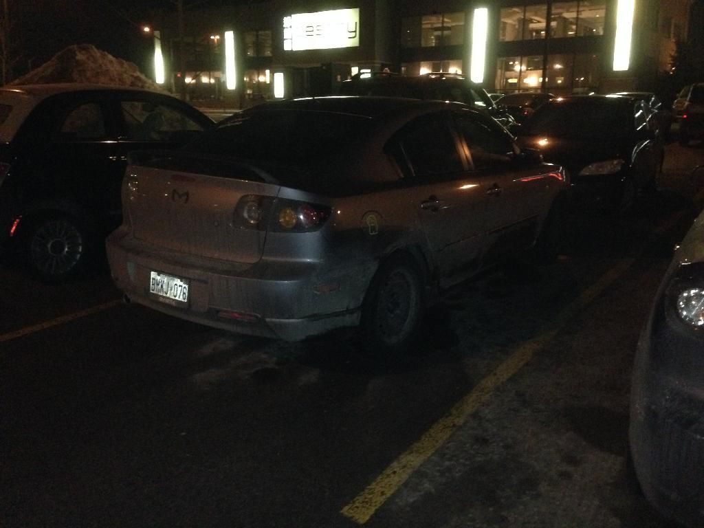 quarter to 6 tonight going south on the 404, you got off at sheppard. White second gen Mz3 or MS3 with tinted tails, rally armors and a nice exhaust. car sounds good.