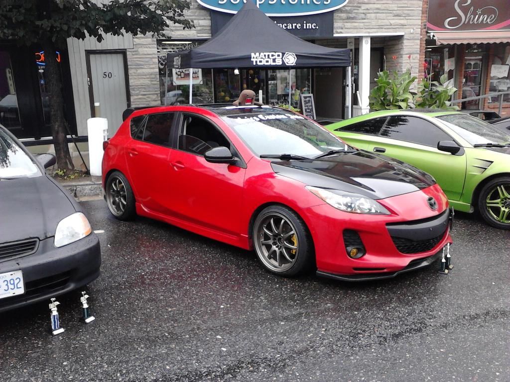 Looked the part, weren't many in the class 370z, the green Celica, the Mz3 and the Civic. They only had about 1/4 of the cars show up because of the weather.